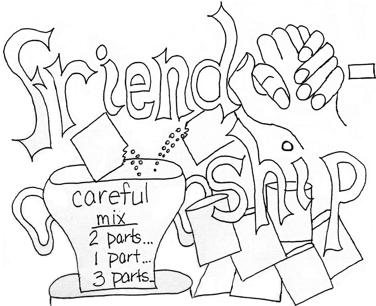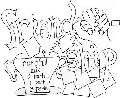 Friendship is one of the ditties in our 48 character traits coloring book and songs.  Here are the words (you'll have to order the audio to know how it goes; available as a set of 48 downloadable mp3 files or as a CD we mail you).